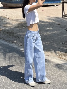 复古直筒宽松显瘦低腰水洗牛仔裤 耐穿 女 经典 Vintage501高质感