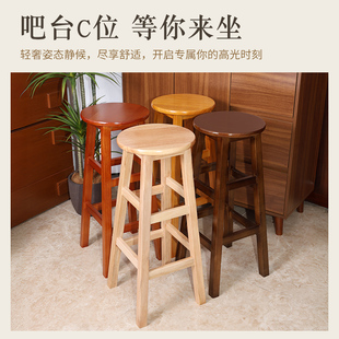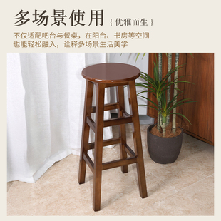 实木高脚凳子梯凳前台奶茶酒吧椅商用简约复古凳家用圆凳成人高凳