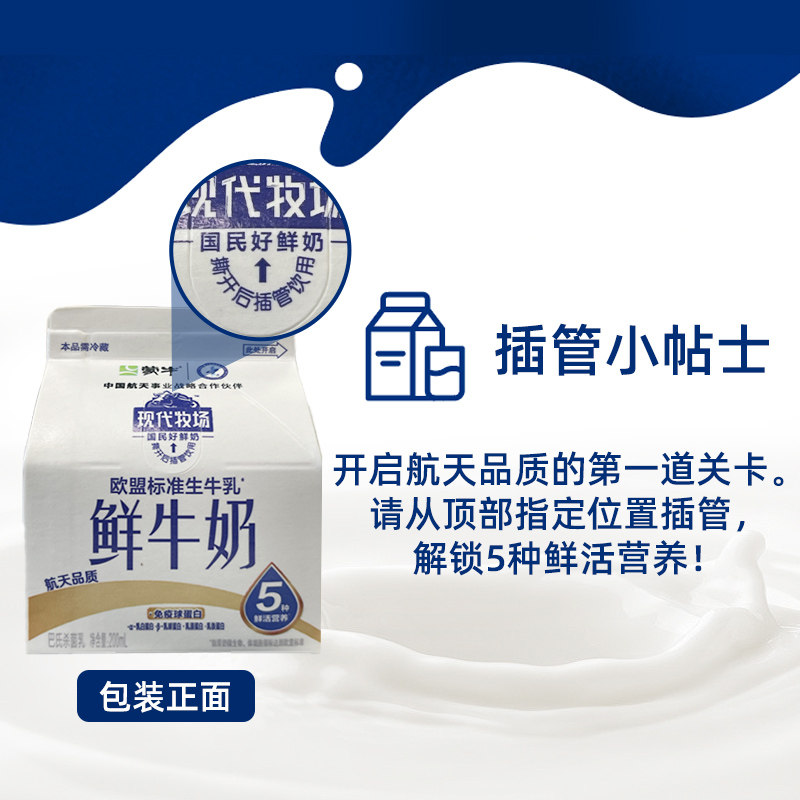 百补 8瓶 蒙牛鲜奶现代牧场200ml A2β酪蛋白185ml 鲜牛奶 2盒