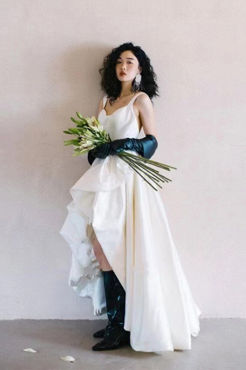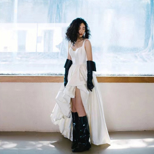 法式 重工缎面主纱女高级感拖尾蓬蓬裙 公主风抹胸婚纱新娘2025新款