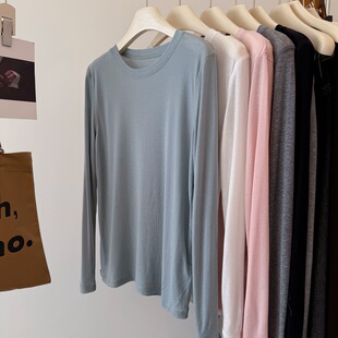 韩货2025new 面膜T恤女外穿 软绵绵%30.7羊毛圆领天丝纯色轻薄长袖