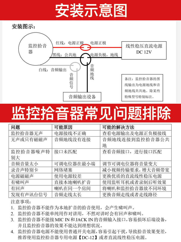 网络摄像机专用拾音器高r保真高灵敏监控摄像头专用识音设备集音