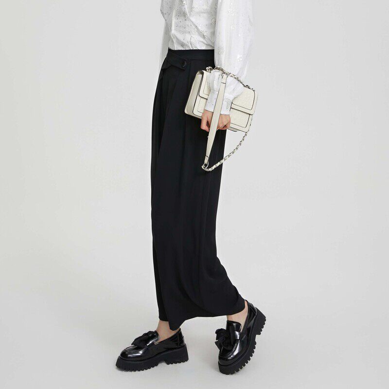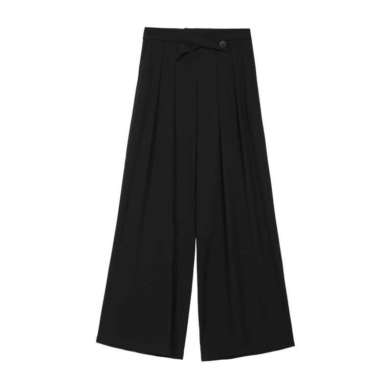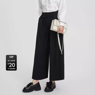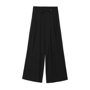 高腰压褶插袋黑色阔腿长裤 时尚 S23280802 女装 sdeer圣迪奥夏装