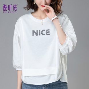 时尚 休闲短款 宽松大码 新款 圆领字母印花上衣 卫衣女2026年早春秋季