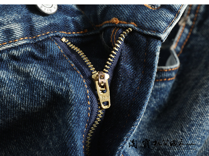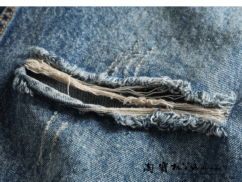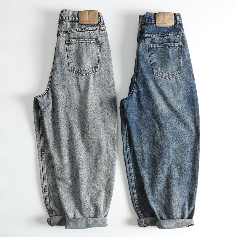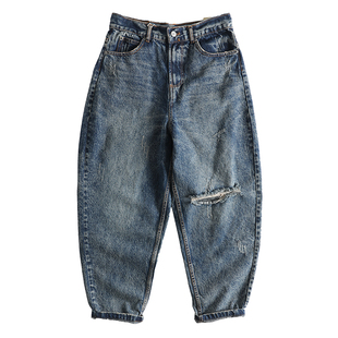 宽松萝卜裤 美式 男士 毛边做旧阔腿老爹裤 潮 休闲复古水洗丹宁牛仔裤