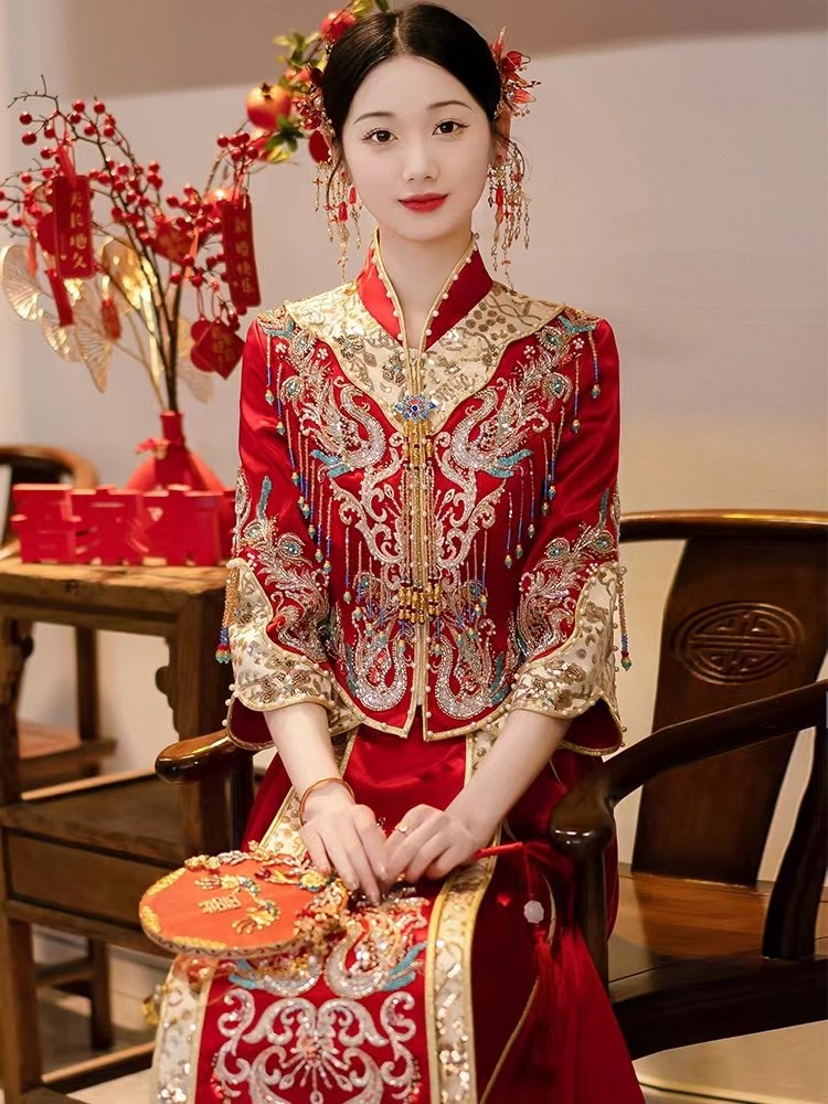 帛闻缎面重工秀禾服新娘结婚高级奢华新中式 婚服龙凤褂嫁衣秀和