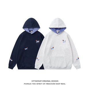 秋季 复古休闲百搭长袖 卫衣男女 领口假两件做旧印花宽松美式 PLTH