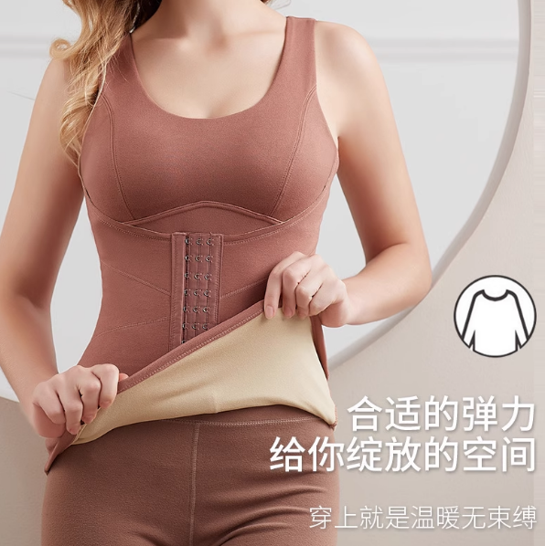 保暖背心女瘦塑身上半衣收腹带显瘦加绒束腰肚子美体秋冬内衣胸垫