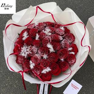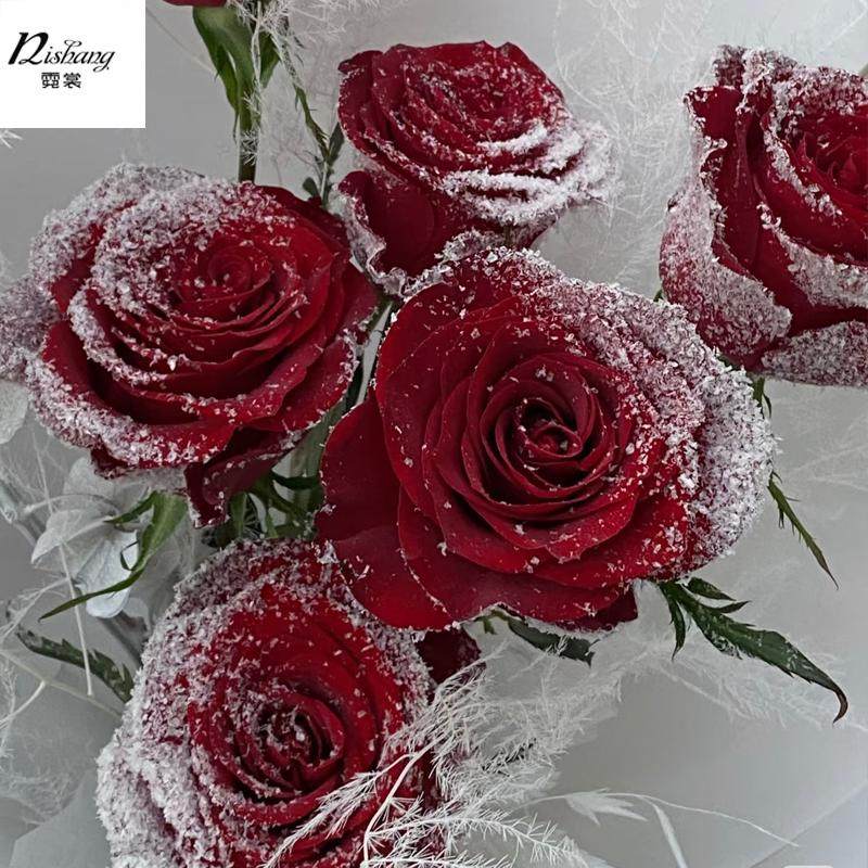 圣诞节网红草莓冰沙玫瑰手工diy装 饰材料圣诞喷雪玫瑰仿真雪花粉
