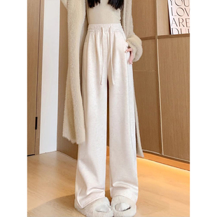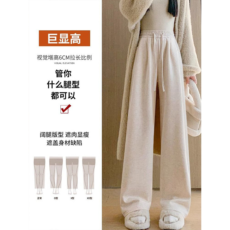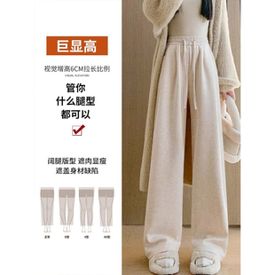 子 女秋冬加绒高腰垂感直筒拖地休闲裤 300斤胖mm大码 雪尼尔阔腿裤