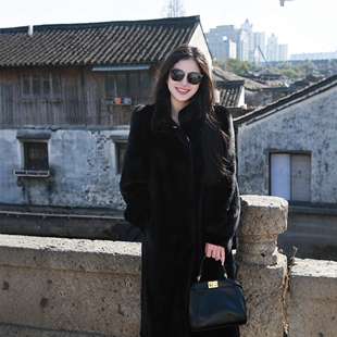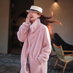 整貂皮小母貂外套女长款 海宁皮草冬 过膝皮毛一体水貂毛大衣年轻款