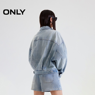 牛仔外套女 酷感水洗OVERSIZE翻领落肩长袖 ONLY2026春季 新款