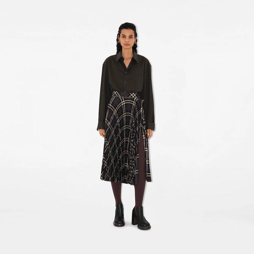 Burberry 80930101 褶饰格纹半身裙