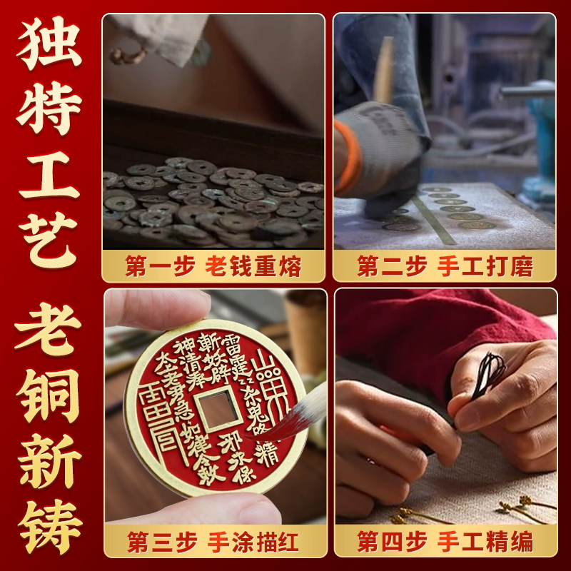 山鬼花钱真品八卦铜钱朱砂古钱币平安吊坠男女项链手链挂件