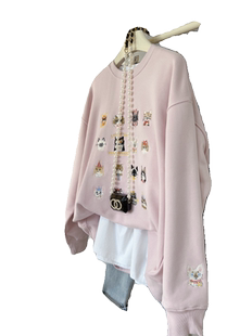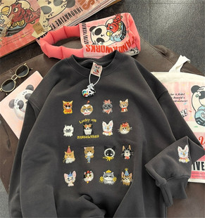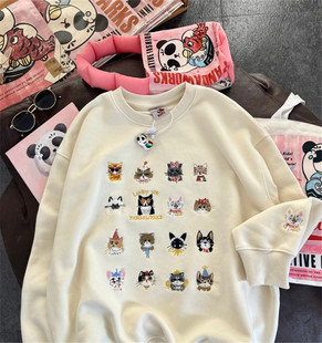 满印小猫刺绣潮版 加绒加厚上衣宽松圆领女卫衣外套 洋气韩系秋冬季