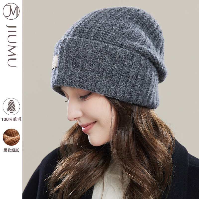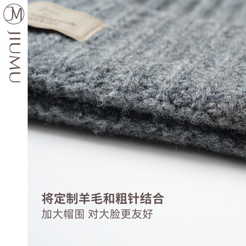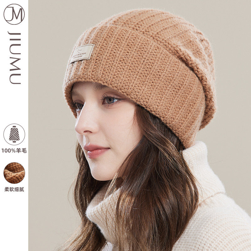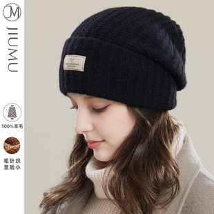玖慕大头围毛线帽子女秋冬纯羊毛25百搭加厚保暖护耳针织堆堆冷帽