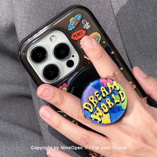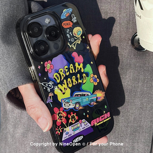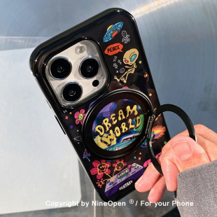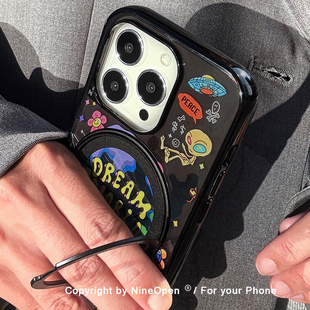 九点半黑色透明磁吸支点双层梦幻星球世界原创适用于苹果17promax 15保护套情侣支架 16PM手机壳iPhone17Pro