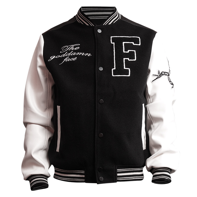 棒球服夹克 街头嘻哈说唱毛巾绣刺绣拼PU皮毛呢修身 TGFCLUB 美式