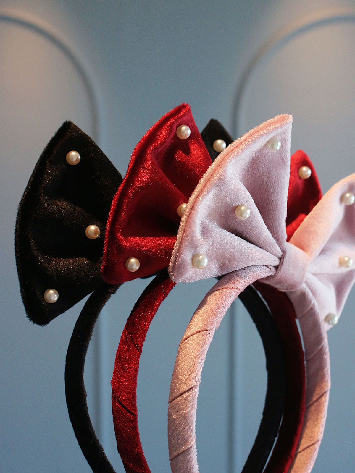 在逃公主酒红丝绒蝴蝶结发箍小女孩气质百搭秋冬头饰儿童防滑头箍
