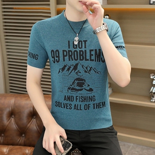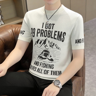 毛衣半高领秋冬内搭短袖 加厚线衣打底衫 针织衫 中领半袖 男修身 男士