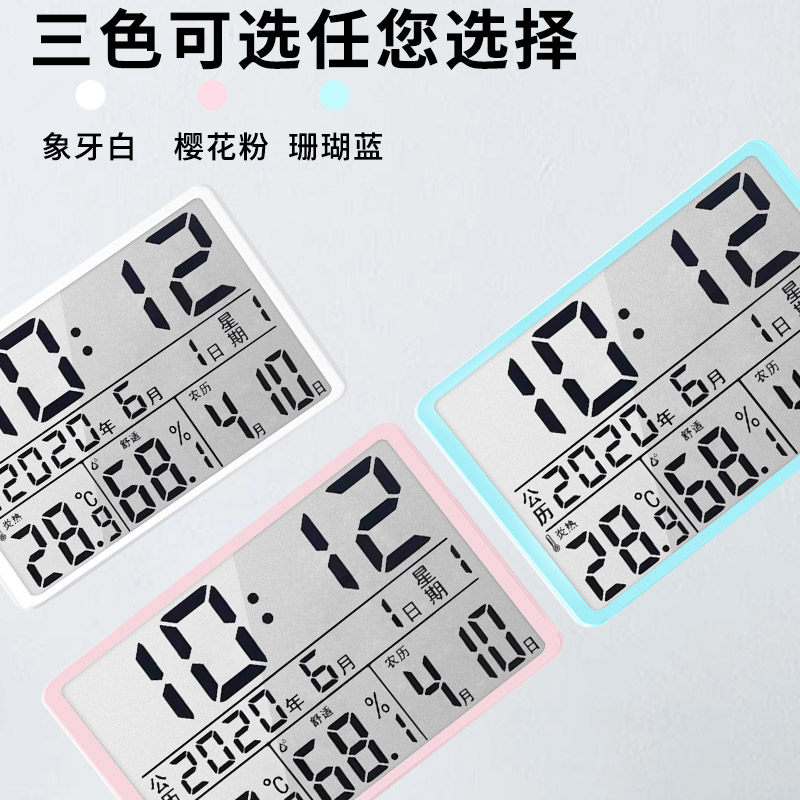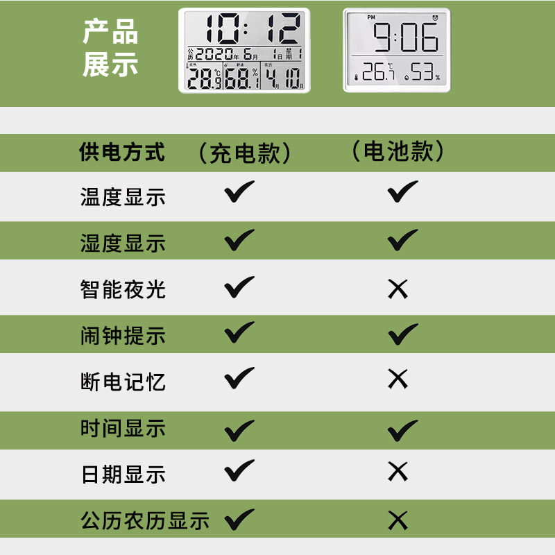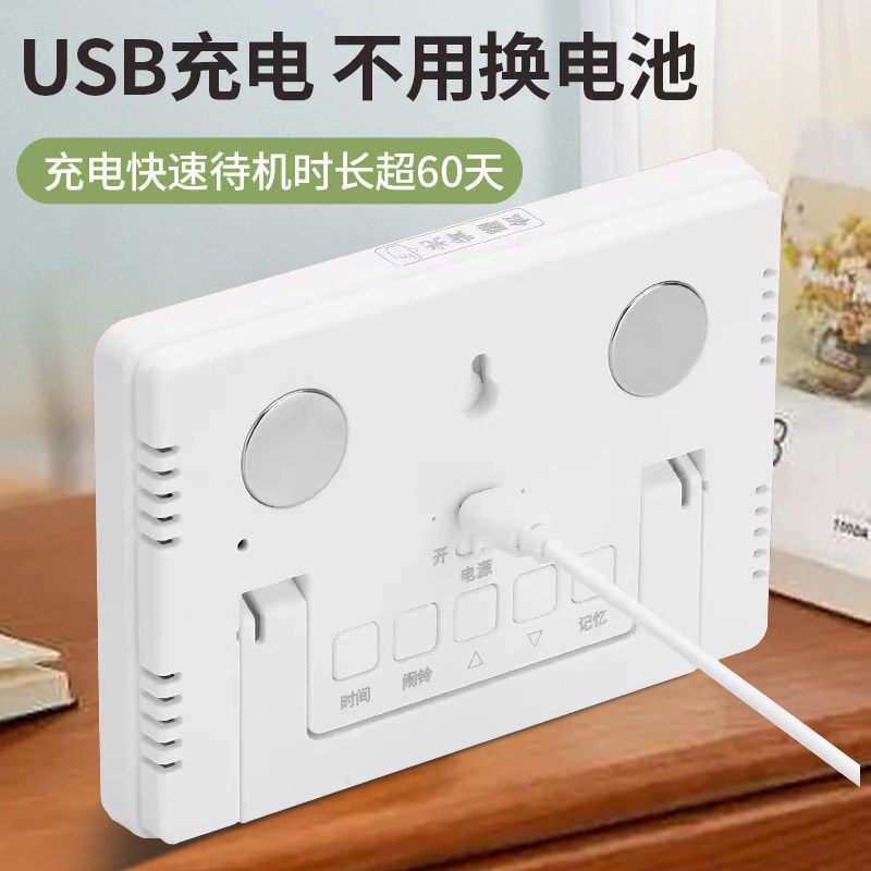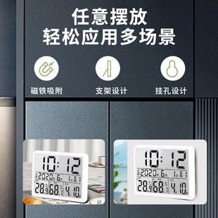充电时钟电子温湿度计简约桌面闹钟卧室静音数字夜光灯磁吸农历表