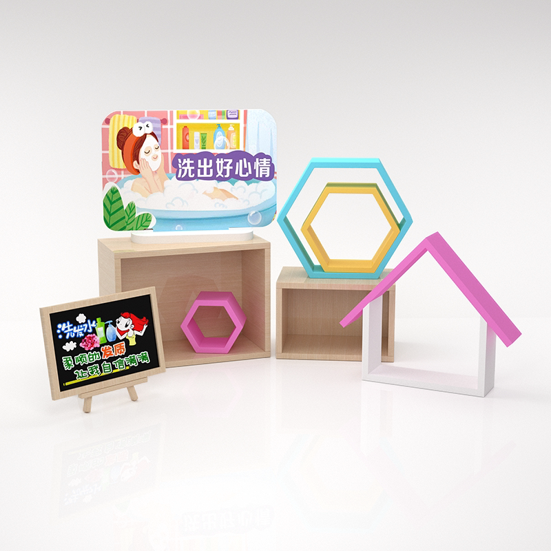 胖东来超市美陈摆件彩色陈列木盒子顶部情景道具货架顶层装 饰氛围