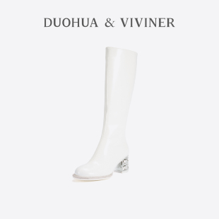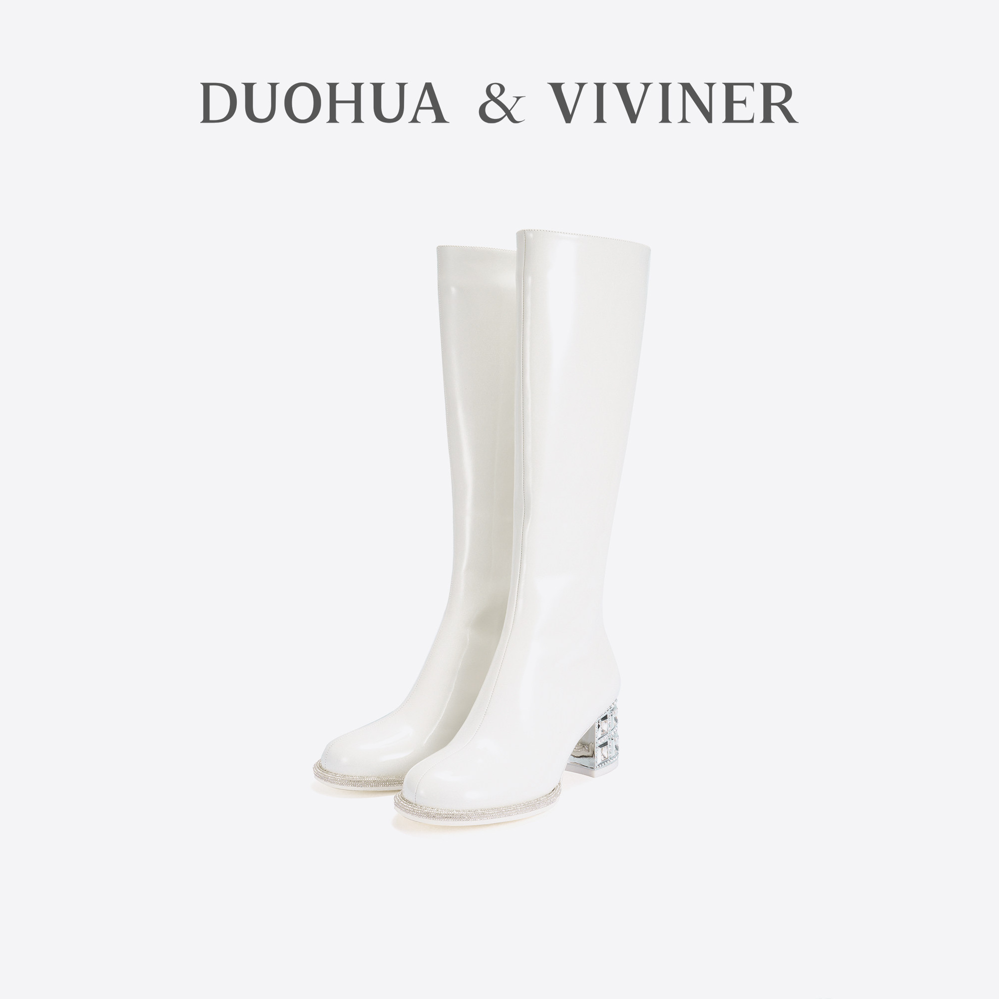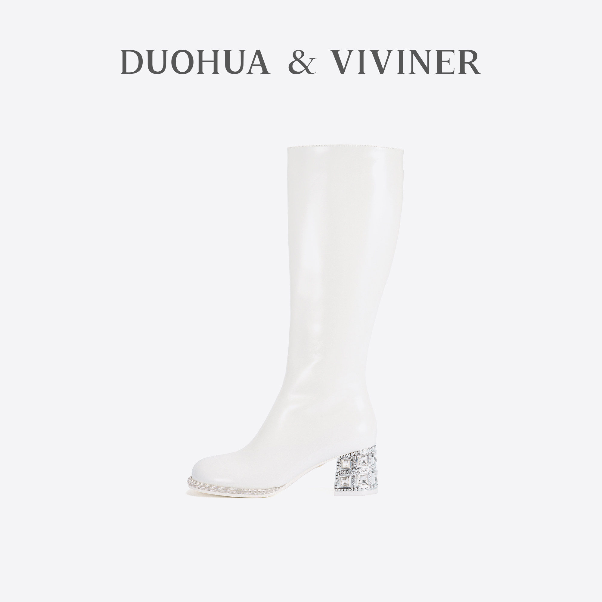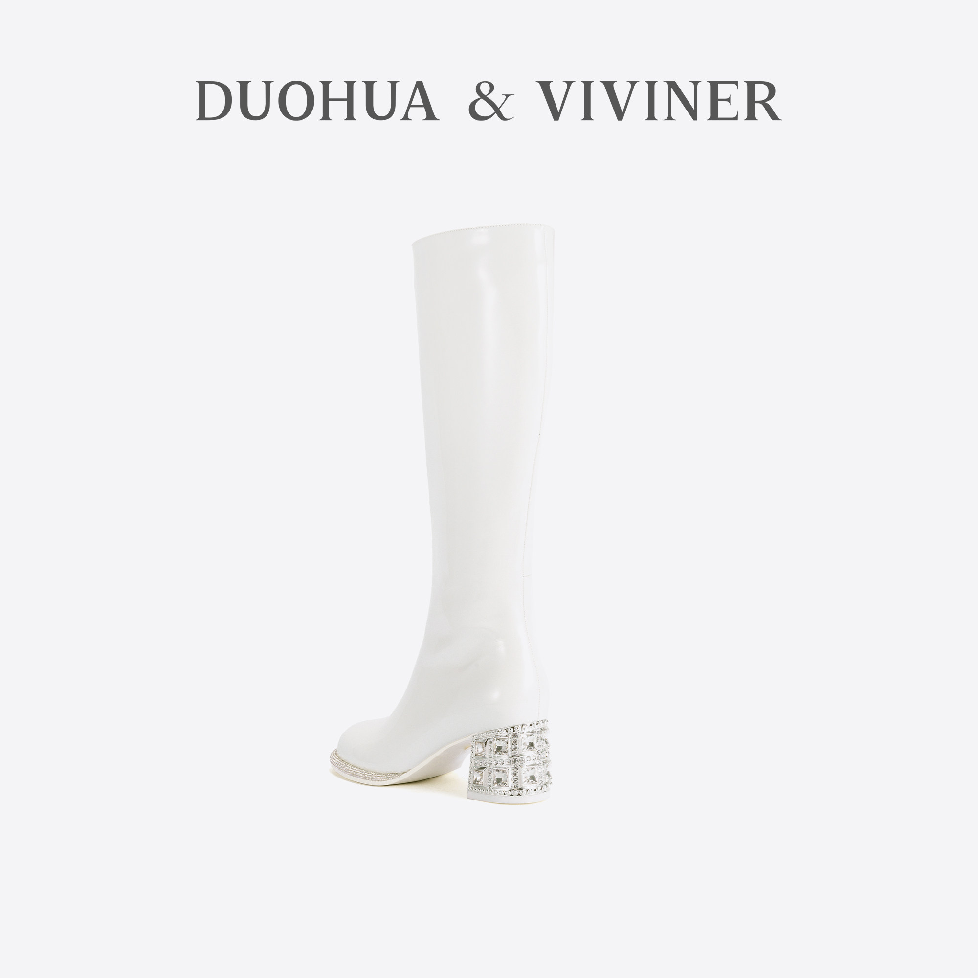 DV白色长筒靴中筒靴DUOHUA&VIVINER 田曦薇孟子义金晨同款
