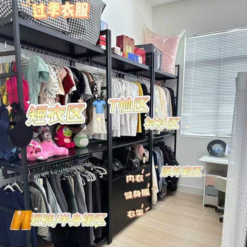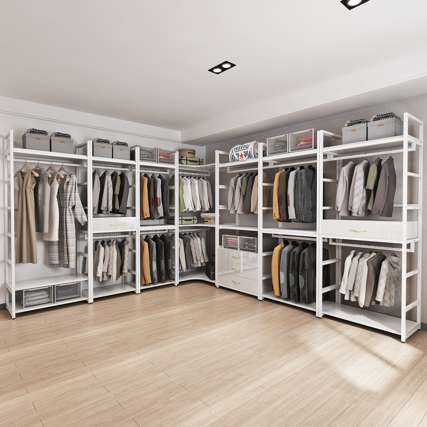 架子落地卧室铁艺挂衣架 衣帽间组装 开放式 货架衣柜金属框架步入式