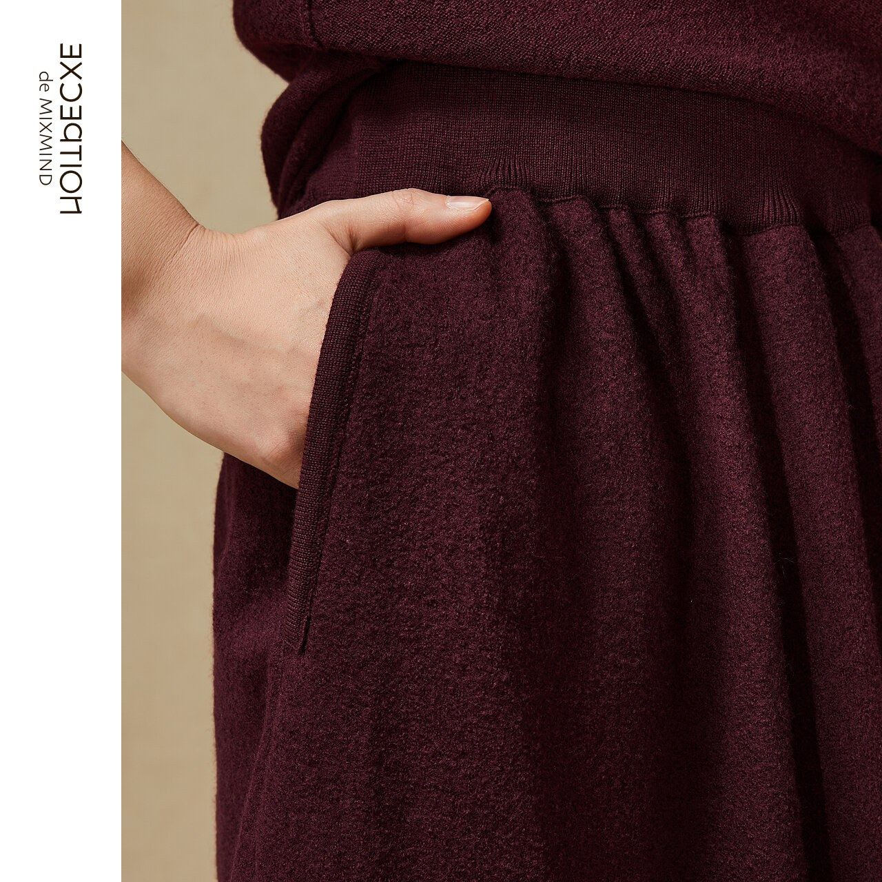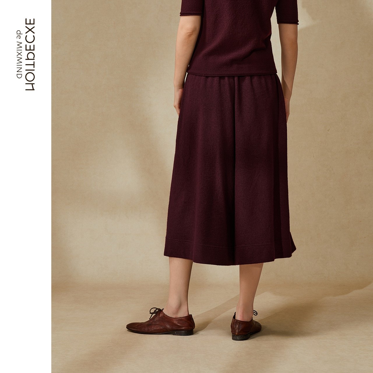 阔腿裤 EXCEPTION例外女装 子绵羊毛碎褶设计撞料九分裤 裤 女 秋冬款