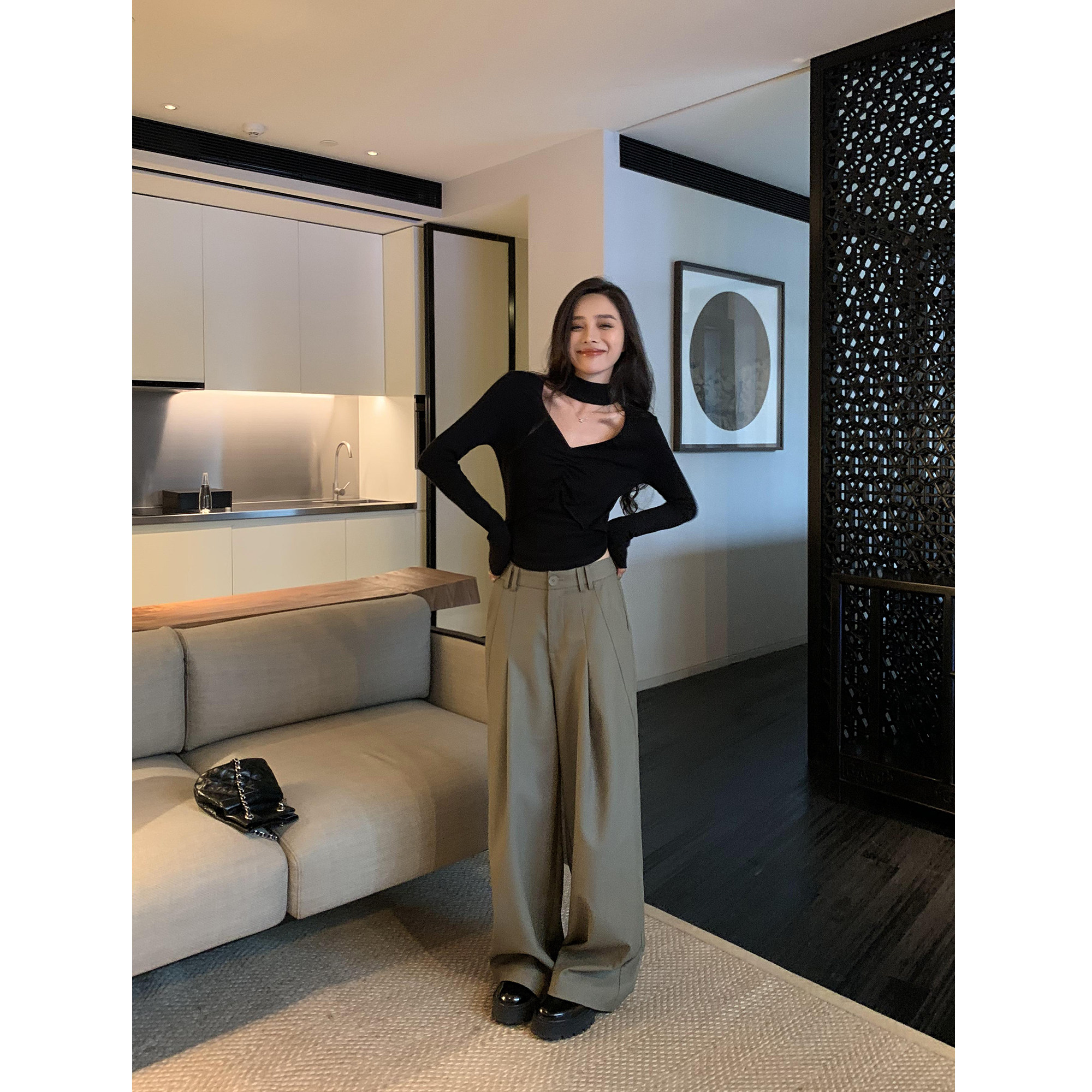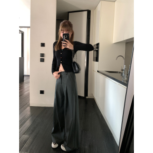 现货6.5折 裤 直筒皮裤 垂感西装 女秋冬高腰阔腿裤 辰米范