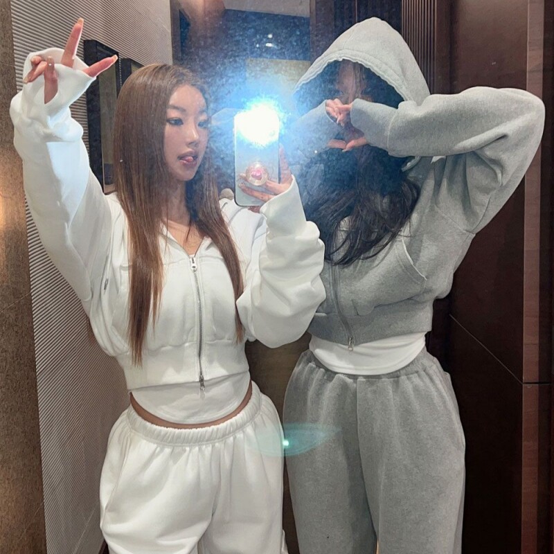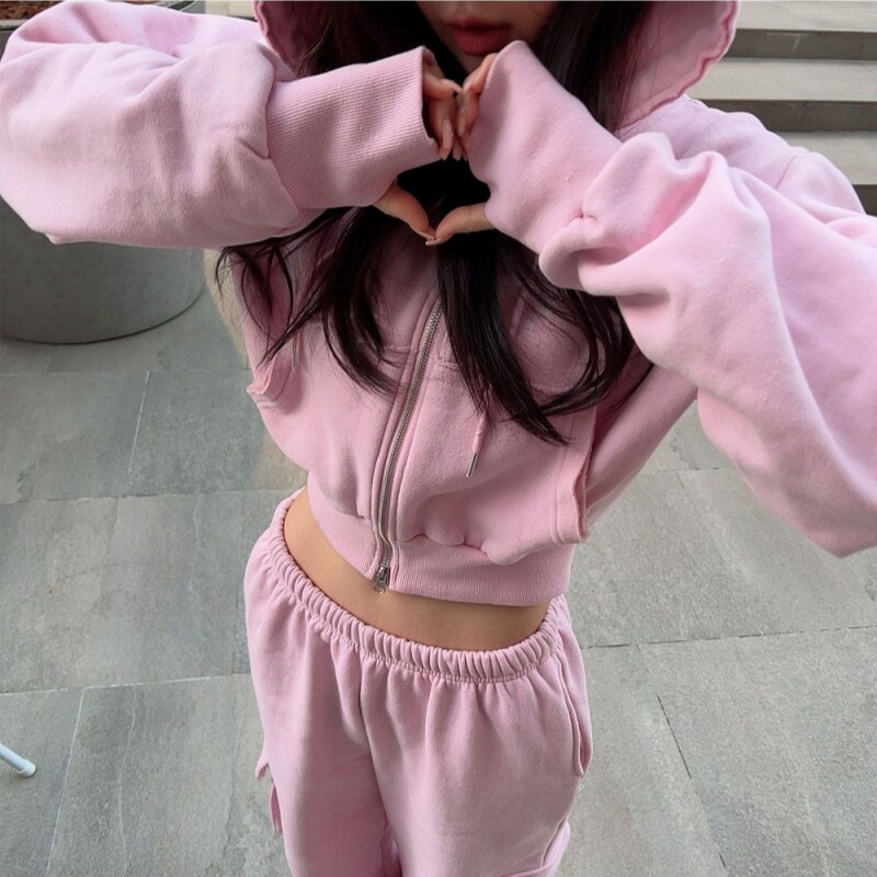 纯棉卫衣 拼接大口袋收腰连帽短外套高腰显瘦开衫 2026春秋新款 时尚