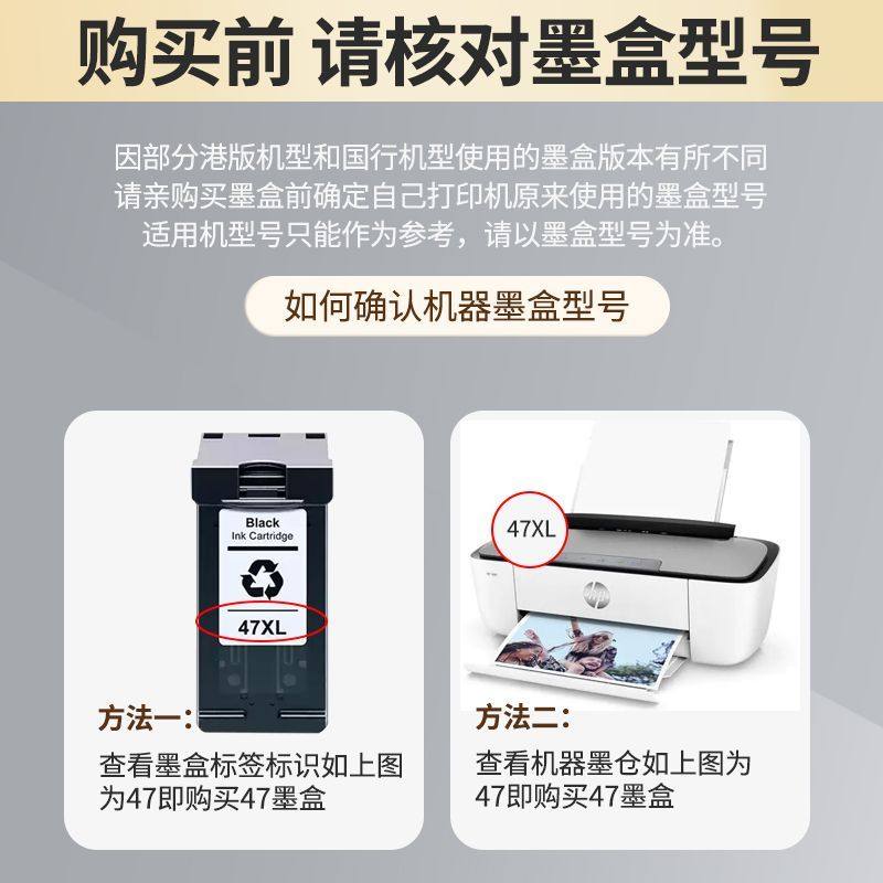 4828 4726 4825 适用惠普HP47XL墨盒4725 4877打印机 可加墨 4777 彩色 4728 大容量 4800 黑色 4826