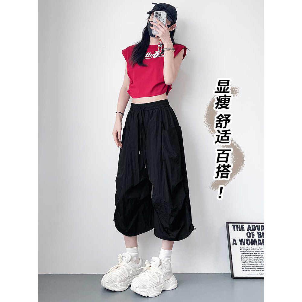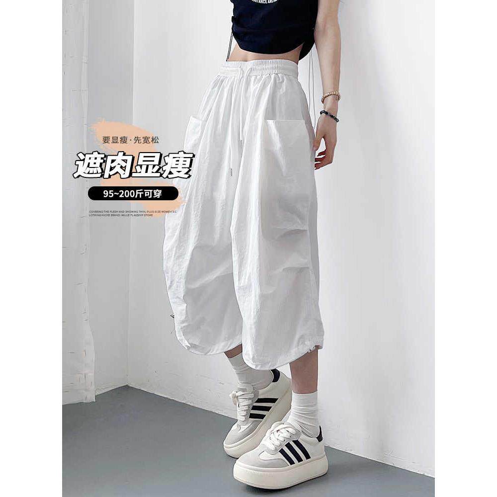 七分裤 冰丝速干裤 胖mm显瘦遮肉登山运动工装 大码 女 女2025春夏季