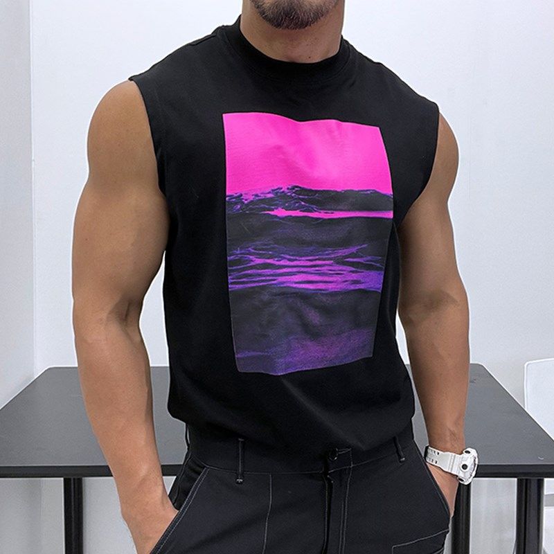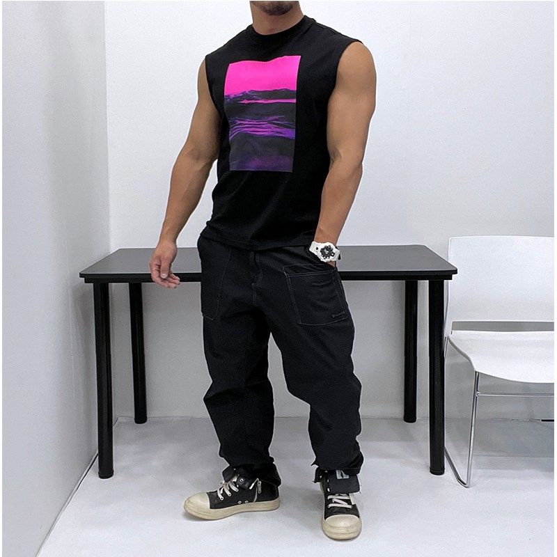 T恤背心肌肉潮男坎肩 H无袖 时髦印花微廓形 优良成衣直筒宽松修身