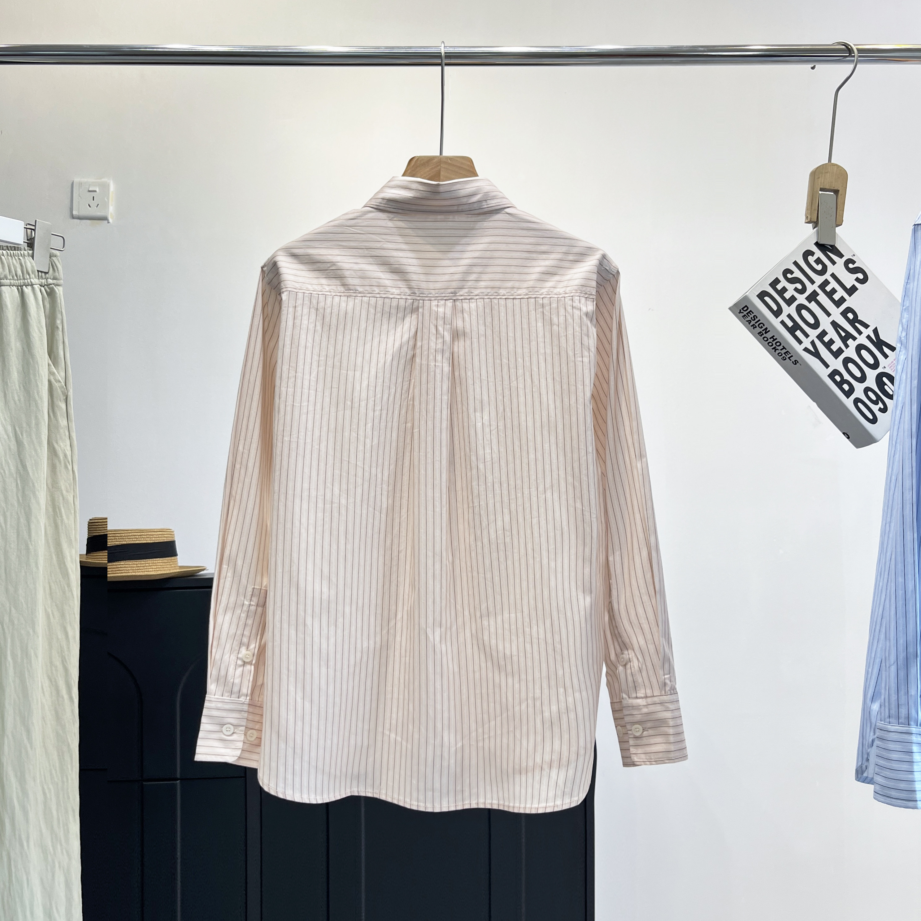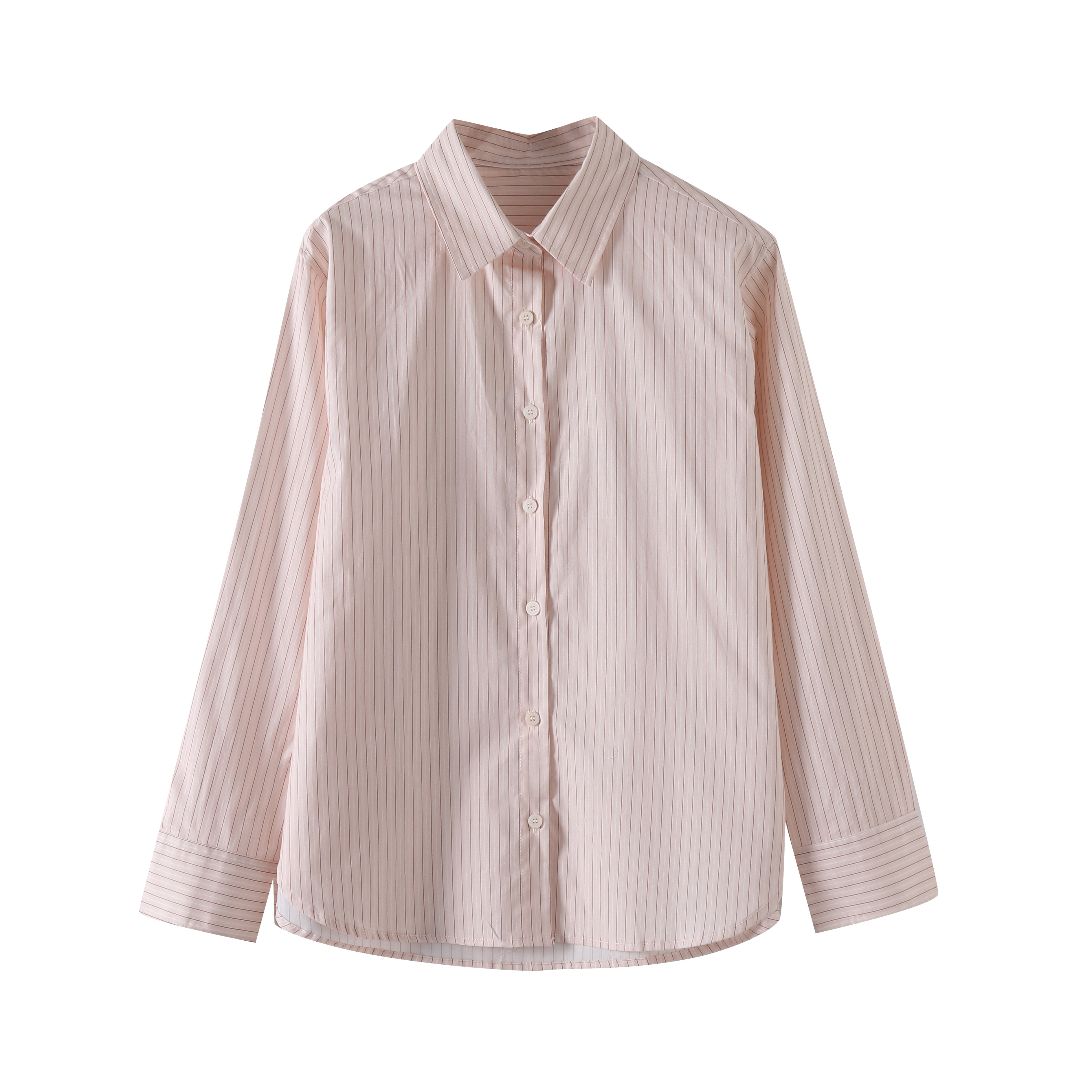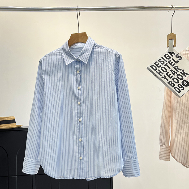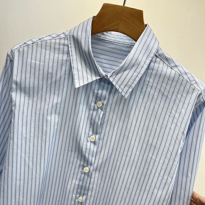 空调衫 春夏秋女装 薄外套 衬衫 休闲百搭通勤纯棉条纹尖领单排扣长袖