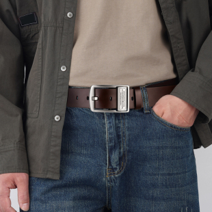 男士 带腰带潮 皮带双面扣头真皮针扣纯牛皮腰带牛皮针扣商务青年裤