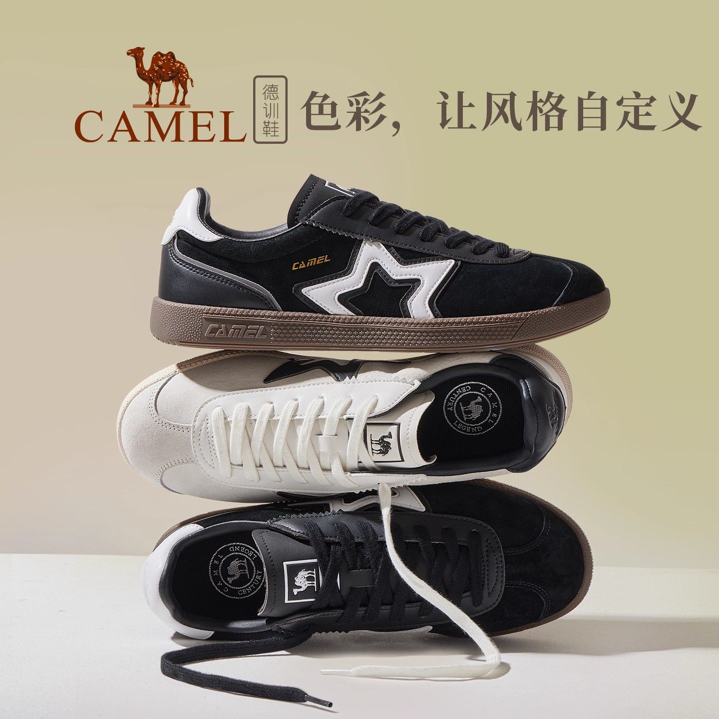 男2025秋冬新款 休闲鞋 男鞋 透气复古德训鞋 子 板鞋 骆驼海星休闲鞋