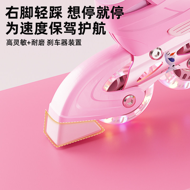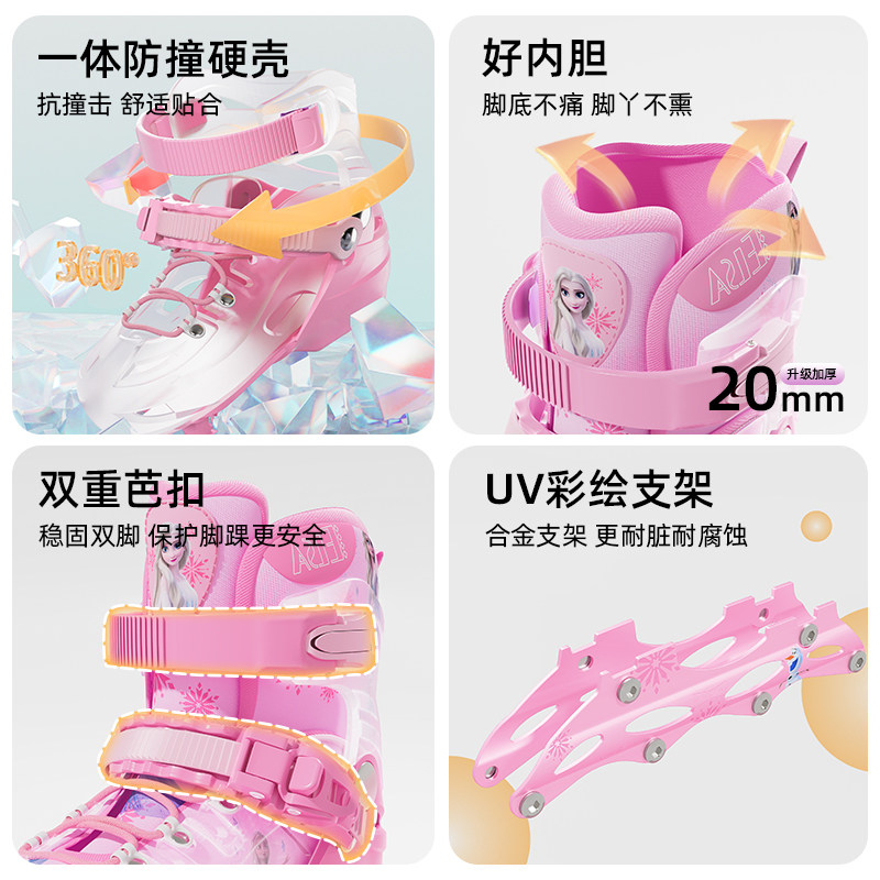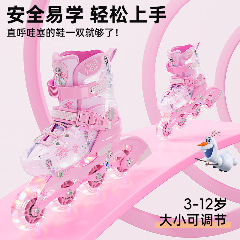 迪士尼轮滑鞋 女童6一12岁滑冰旱冰初学者艾莎滑轮女孩 儿童溜冰鞋