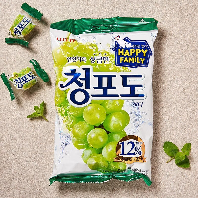 韩国零食LOTTE乐天青葡萄硬糖青提糖果软糖进口水果糖葡萄味糖果