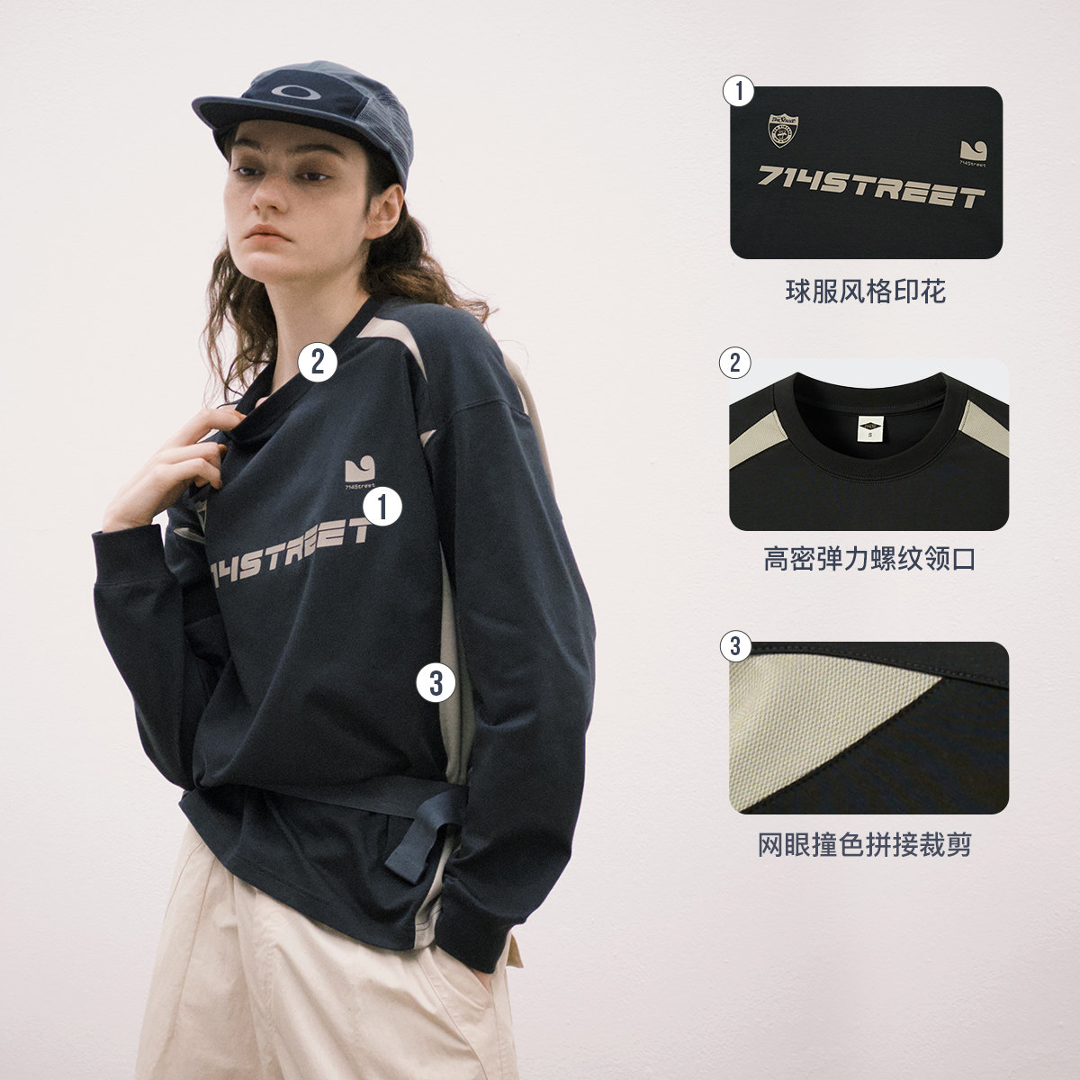 男 凉感防晒吸湿速干T恤复古撞色运动情侣长袖 714street秋季 新款
