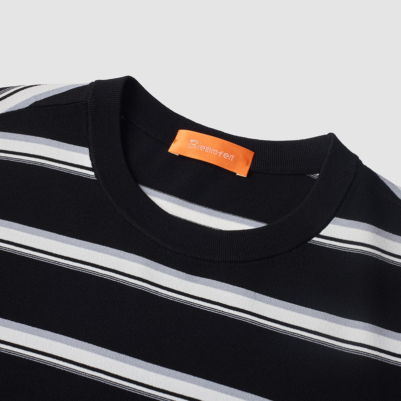 清泉纱 圆领针织衫 比音勒芬春夏季 休闲撞色条纹短袖 上衣 男经典