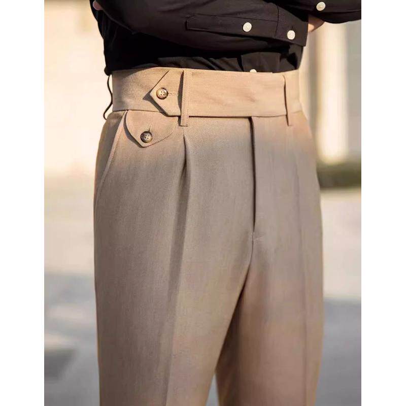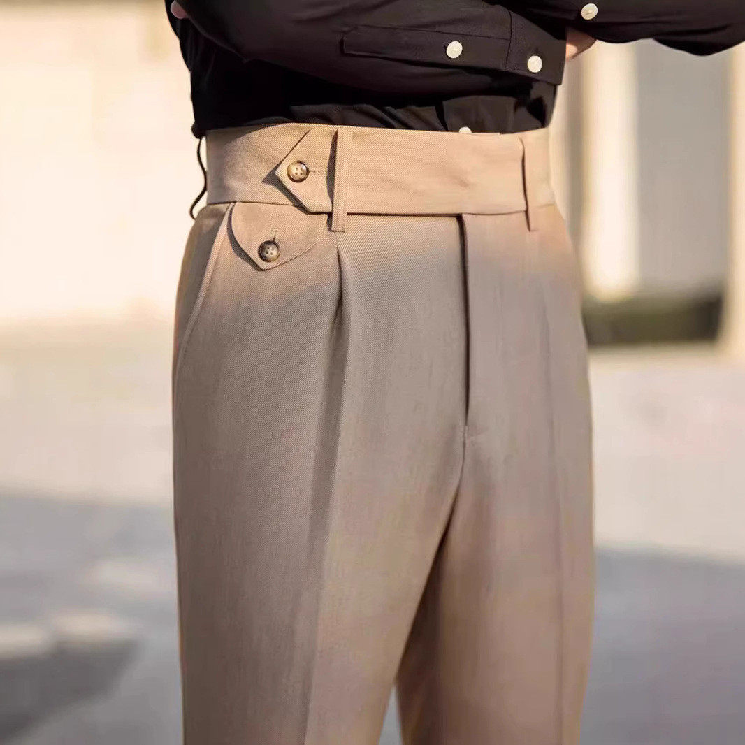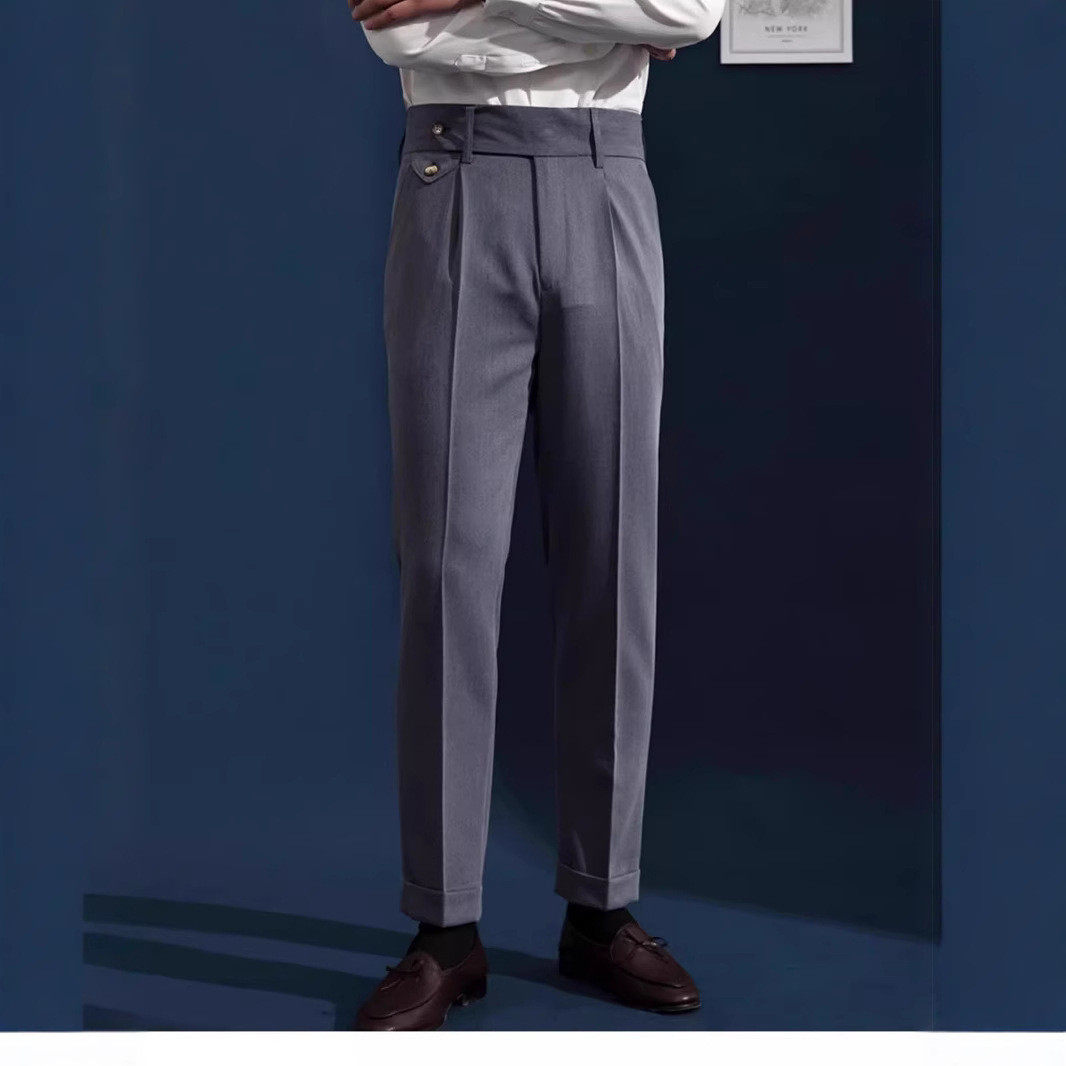 复古修身 垂感长裤 副厂那不勒斯高腰休闲裤 英伦风 睿绅服饰