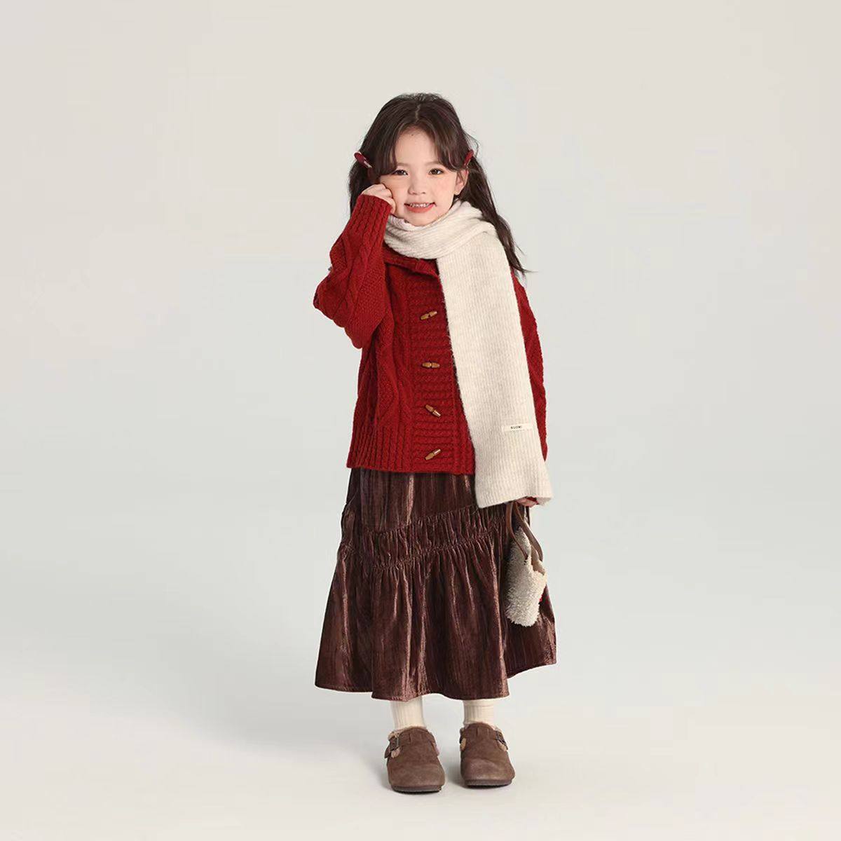 大翻领绞花口袋100绵羊毛针织上衣半裙套装 迟伞伞25 fw高智冷女