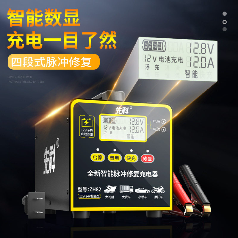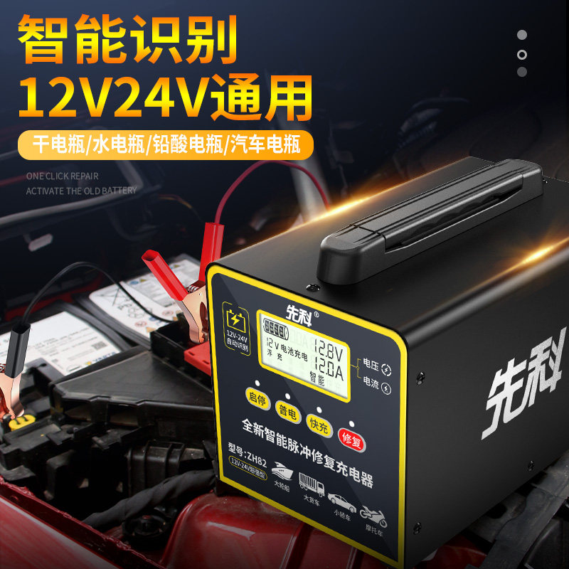 先科汽车电瓶充电器12v24v大功率全自动智能通用蓄电池修复充电机