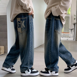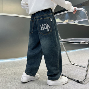 加绒宽松直筒阔腿裤 女童春秋牛仔裤 洋气冬装 中大儿童韩版 2025新款