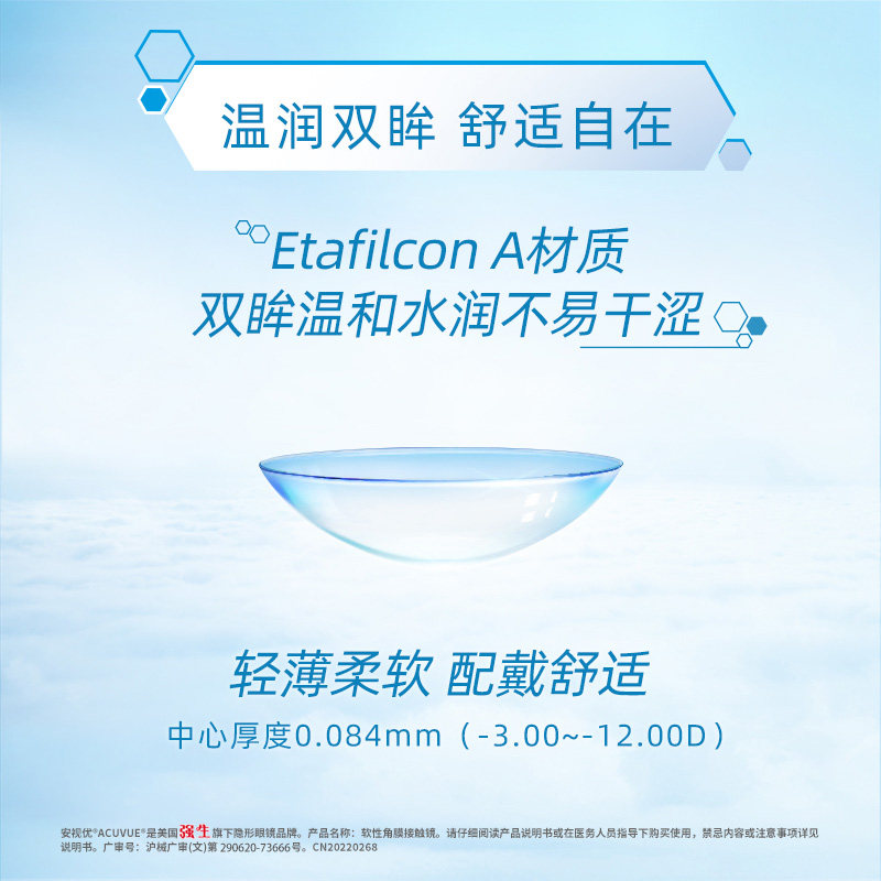 强生舒日日抛30片安视优隐形近视眼镜acuvue进口透明片旗舰店直播