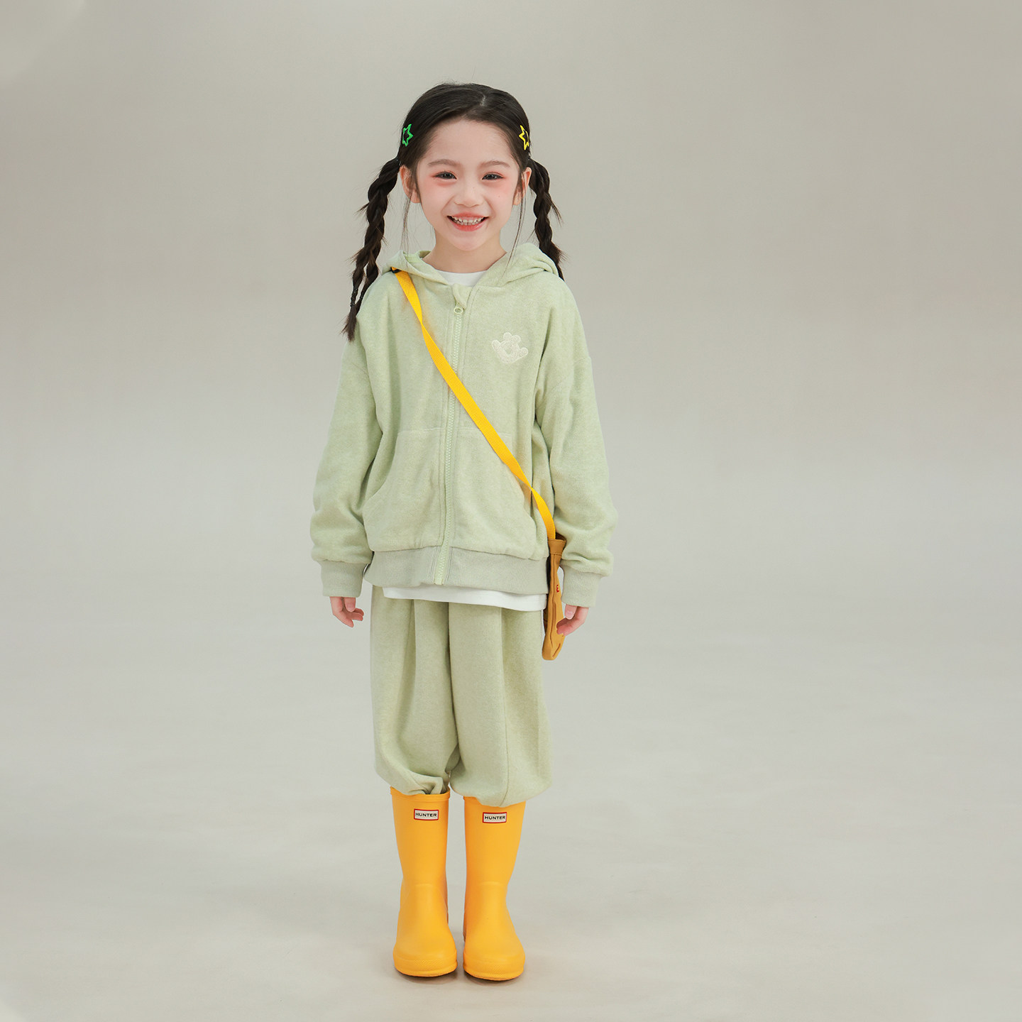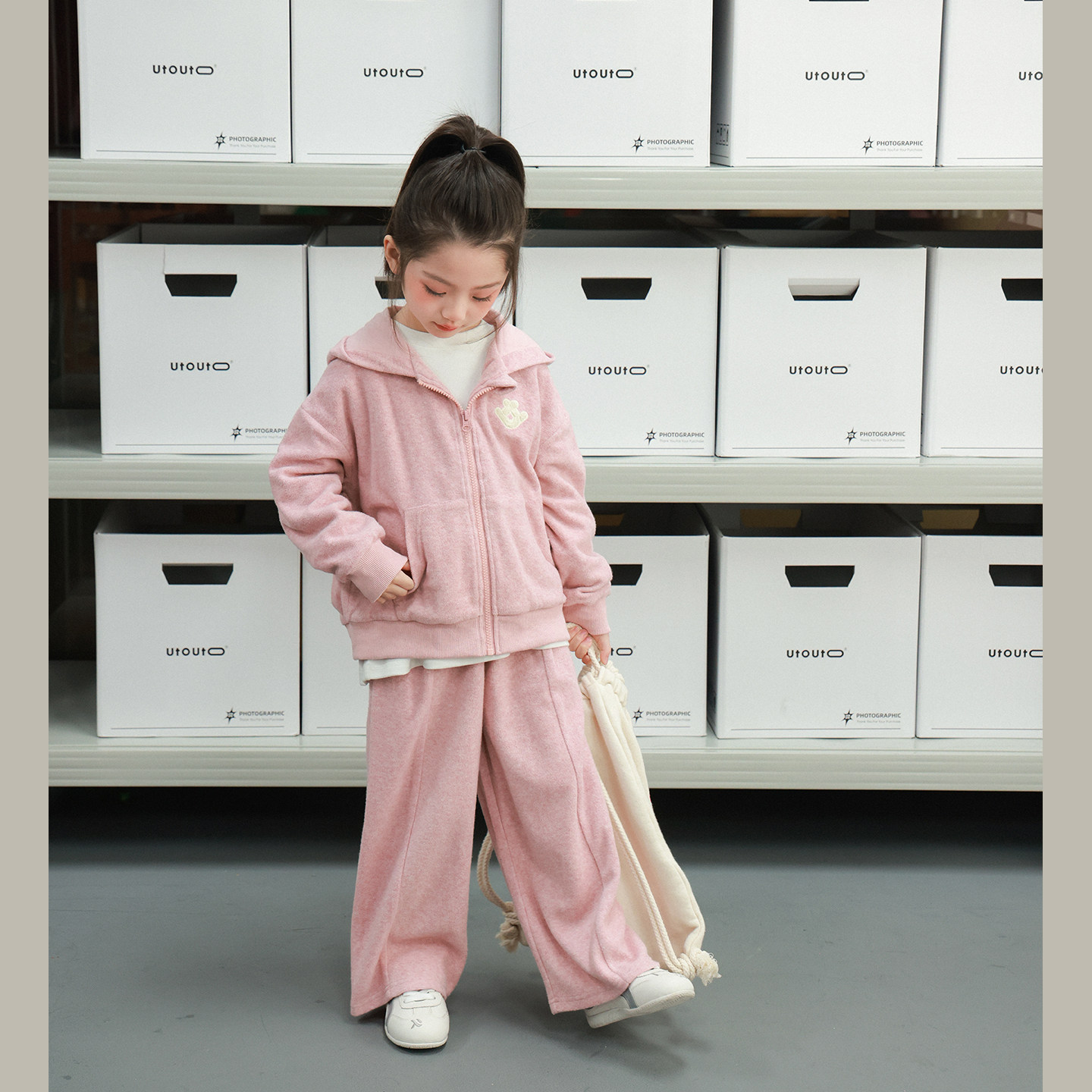 慵懒风宽松套装 套组女微胖大码 kt刺绣毛领卫衣外套长裤 安妮不火
