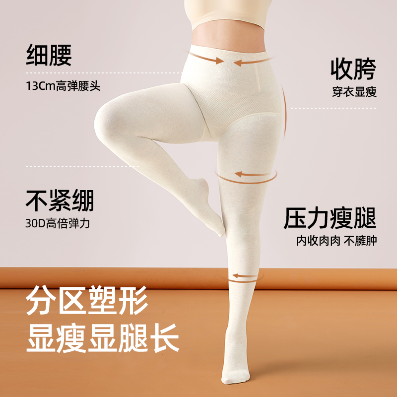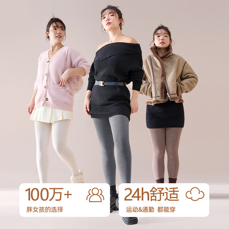 连裤 女秋冬加绒外穿胖mm高腰收腹不掉裆2024新款 袜 白色打底裤 大码