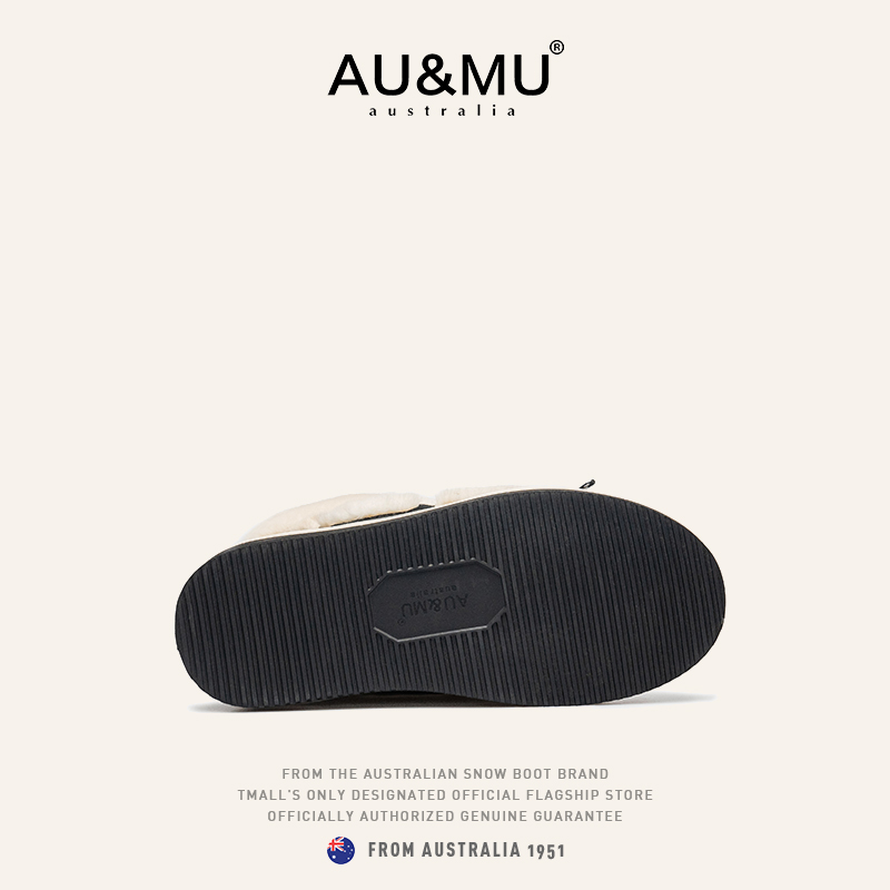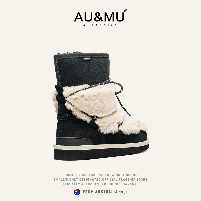 民族风套筒加绒厚女鞋 AUMU翻毛中筒雪地靴 时尚 冬季 真羊皮毛一体