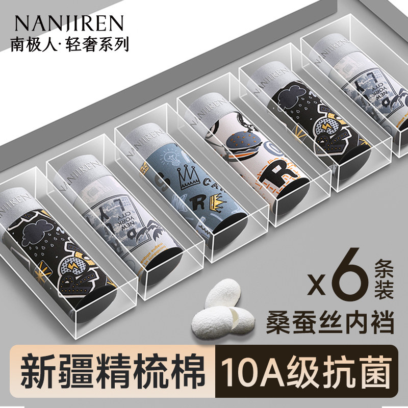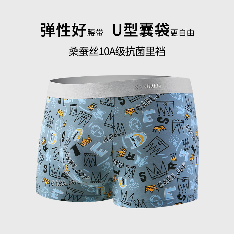 头平角短裤 男生四角底裤 衩青少年桑蚕丝抗菌裆 内裤 南极人纯棉男士